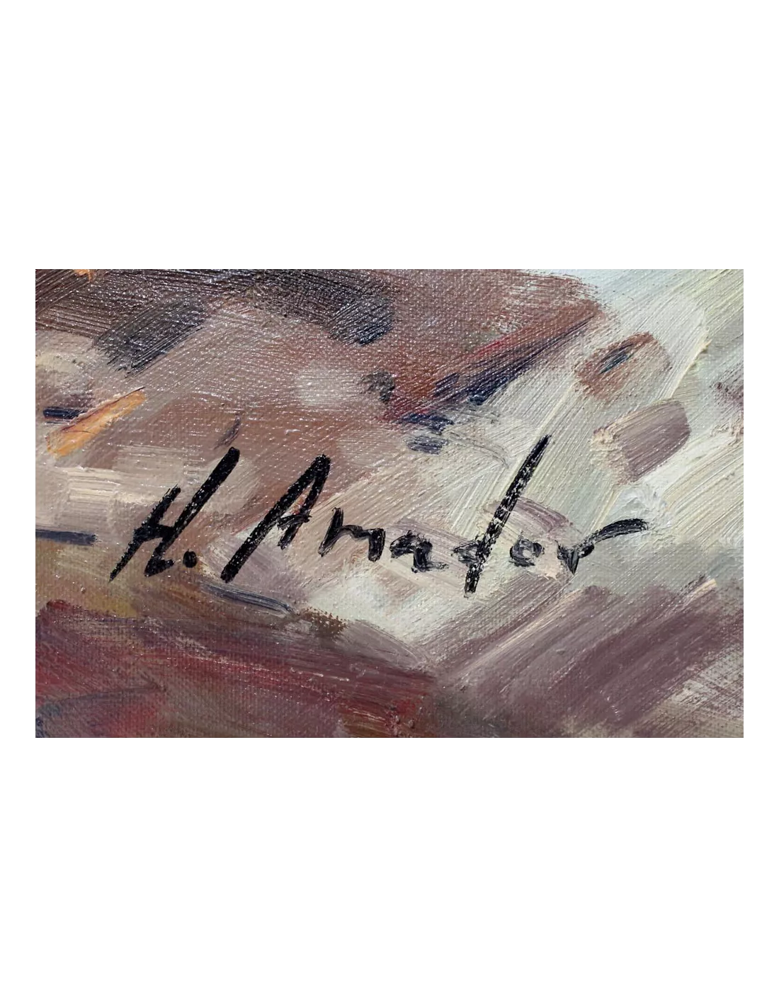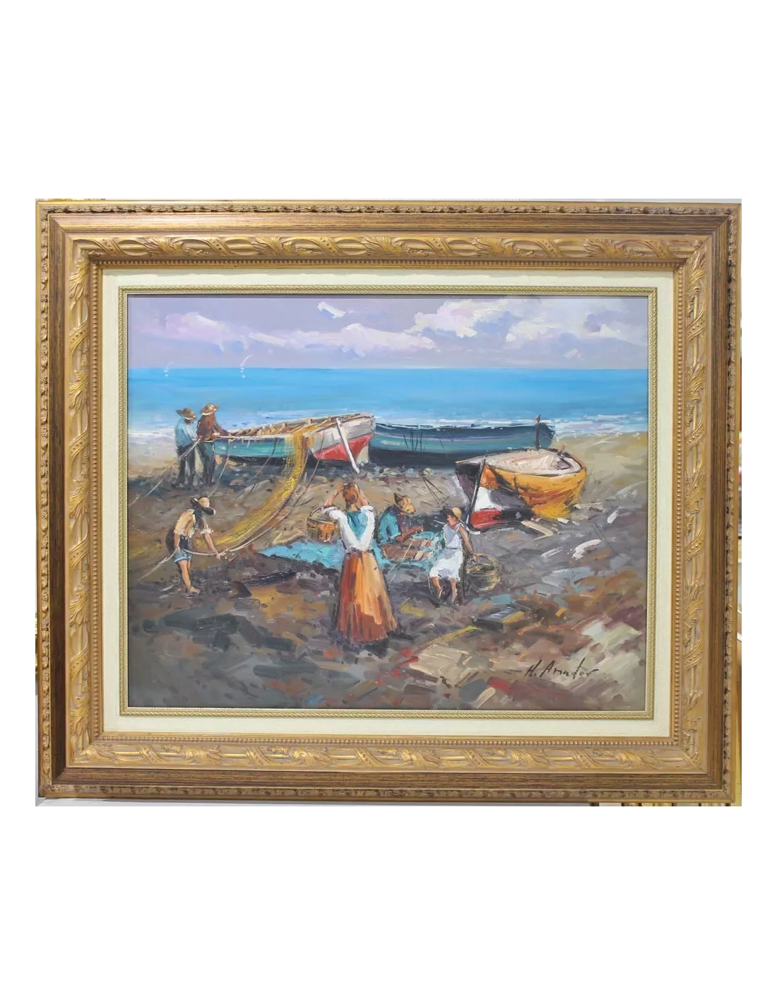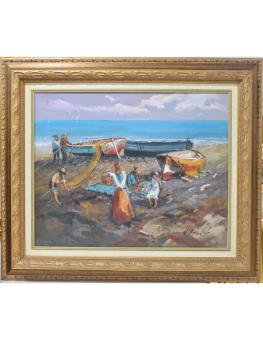 Impressionist style and loose brushstrokes. H. Amador shows us the dignified work of fishing with great mastery.