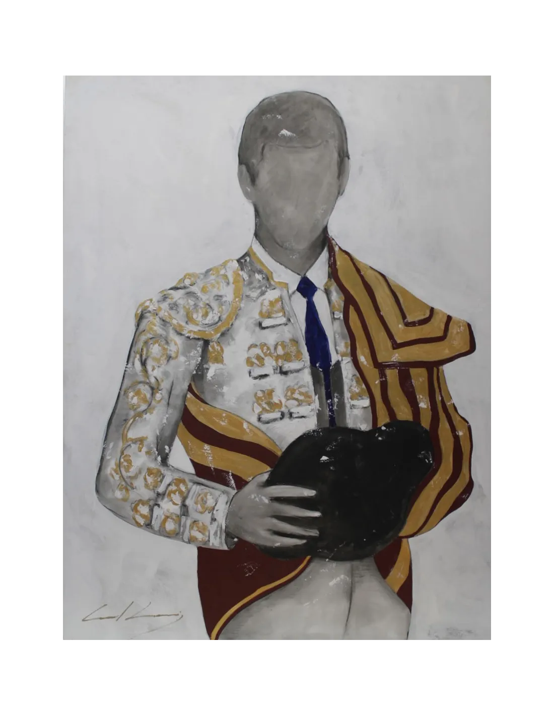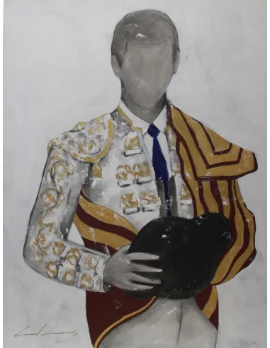 Obra figurativa taurina de grandes dimensiones que firma Carol Levi. Cuadro al óleo sobre lienzo, muy adecuado para estilos vanguardistas y modernistas, favorece la amplitud, luminosidad y claridad del espacio.