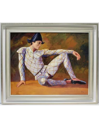 This figurative artist shows us his qualities as impressionist artis in this quality work with striking colouring and lines. He makes use of intense colours and great vibrancy in his expressive and representative figures which have inspired him since his childhood. He finds his figures a beautiful subject to immortalize.