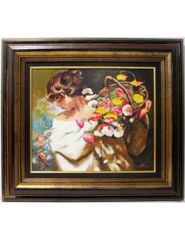 Mujer con cesto de flores