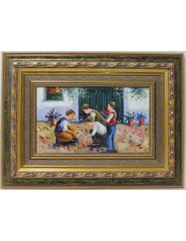 Bonita obra de la conocida Montse Aráez, dónde vuelve a jugar con uno de sus temas preferidos y que domina a la perfección como son las escenas de niños y sus travesuras. Ganadora de varios certámenes, su obra se encuentra repartida por toda la península.